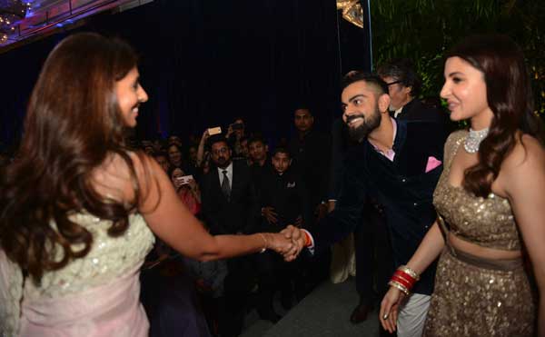 Mumbai, Dec 27 (IBNS):Bollywood megastar Amitabh Bachchan met Indian cricketers like R Ashwin while attending the Mumbai reception of Indian cricket team captain Virat Kohli and actress Anushka Sharma.