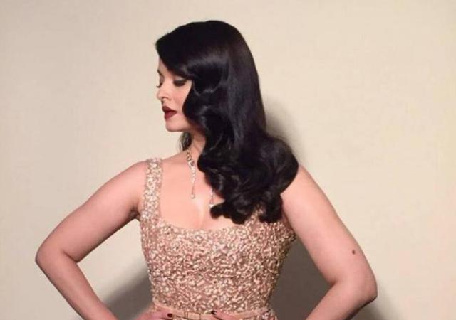 Aishwarya wore a gold lace gown with an embellished bodice that has been designed by Elie Saab.