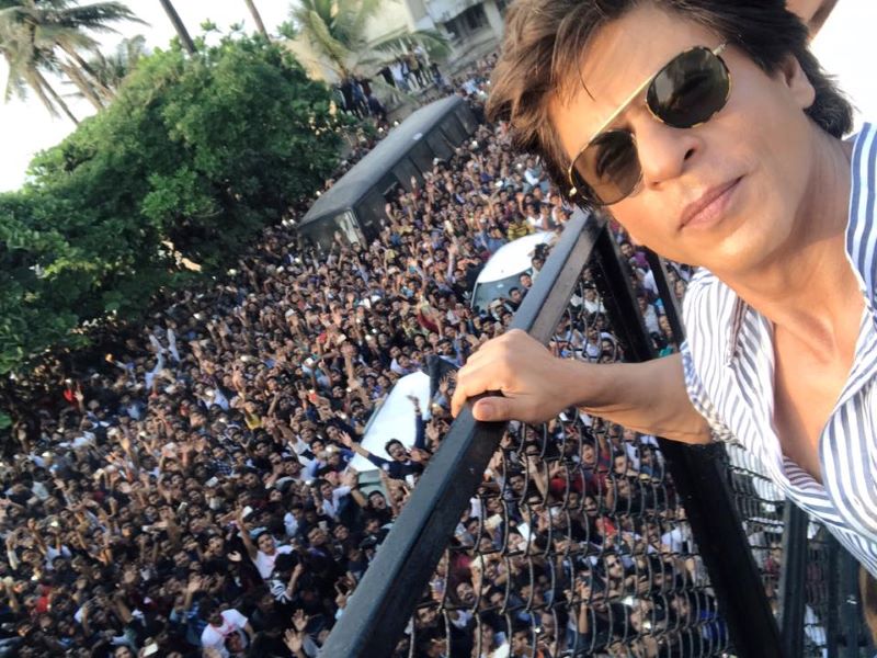 Shah Rukh Khan greeting fans standing outside his Mumbai residence 'Mannat'