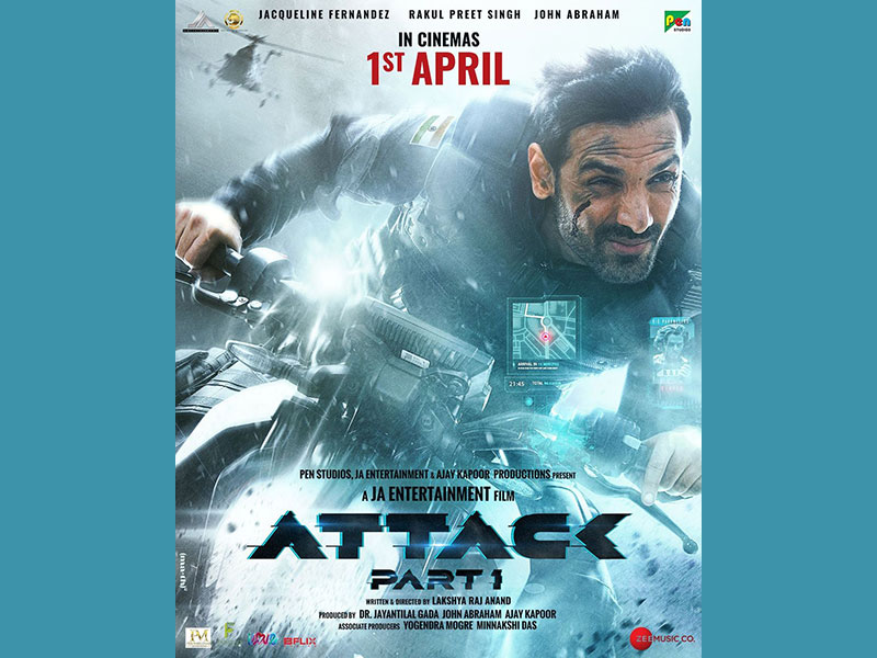 Dr.Jayantilal Gada (Pen Studios), John Abraham (JA Entertainment), and Ajay Kapoor Productions present John Abraham's Action Entertainer ‘Attack’. A JA Entertainment Film, directed by Lakshya Raj Anand, worldwide release by Pen Marudhar, in cinemas on 1st April 2022.