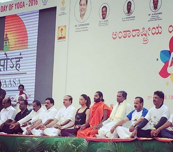Sharing a picture of the event, Basu tweeted: "Yoga practice with the leaders of the state of Karnataka and the Yoga Enthusiasts of Bengaluru."