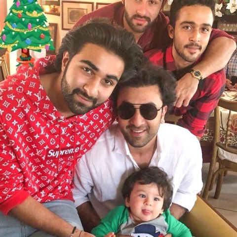 #TaimurAliKhan with his uncles Ranbir Kapoor, Armaan, Aadar and Zahan at the family's Christmas brunch! pic.twitter.com/ujFYgHEjyn