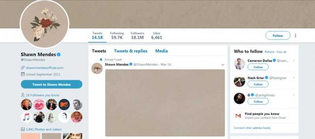 Image: ScreenGrab of Shawn Mendes Twitter page