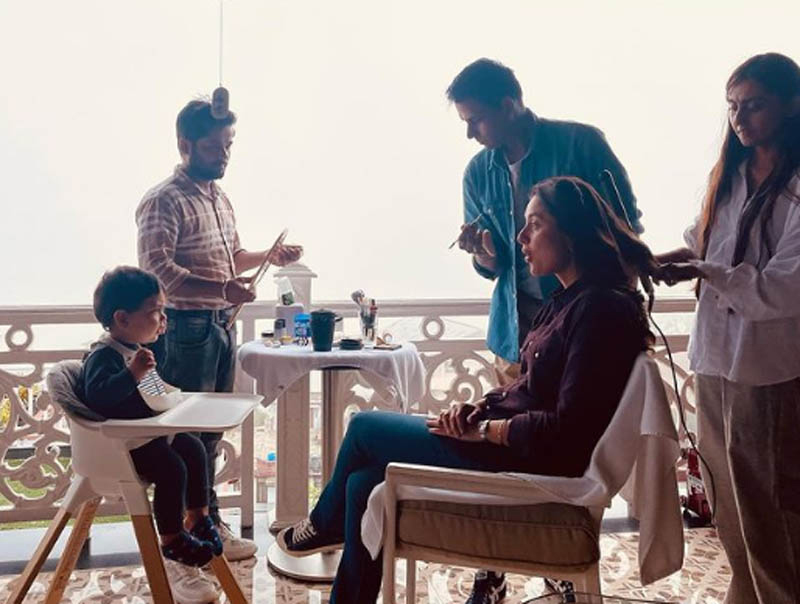 On Saturday, she shared an interesting image from the set of the Netflix series  where she could be seen spending some time with younger son Jehangir Ali Khan.