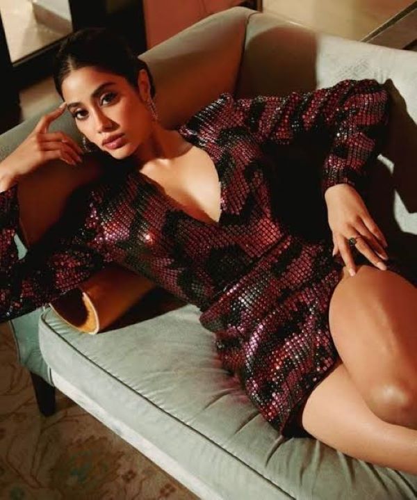 Jahnvi nails the shimmer outfit, which she paired with subtle makeup and some minimal jewellery with this red shimmer dress.