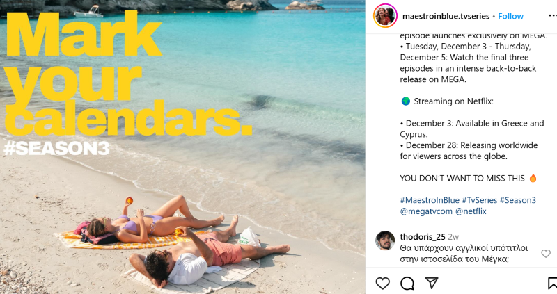 Greek web series Maestro in Blue, which had a successful run on Netflix, is set for a return with its third season in December.