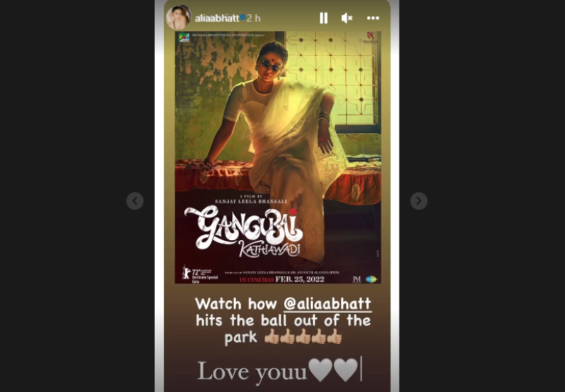 Taking to Instagram, Neetu Kapoor wrote in a story, "Watch (Gangubai Kathiawadi) how Alia Bhatt hits the ball out of the park."