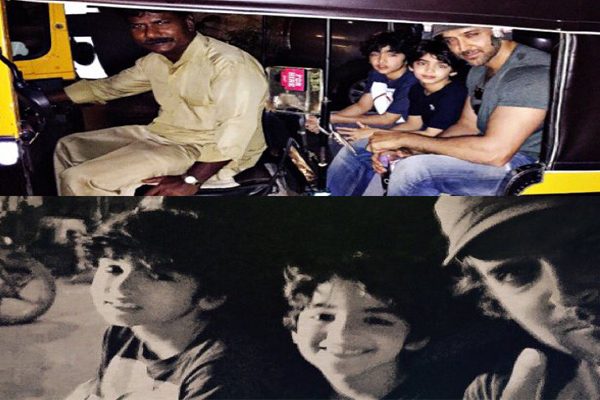 Mumbai, Jan 3 (IBNS): Bollywood actor Hrithik Roshan and his children went for an auto ride on Sunday.