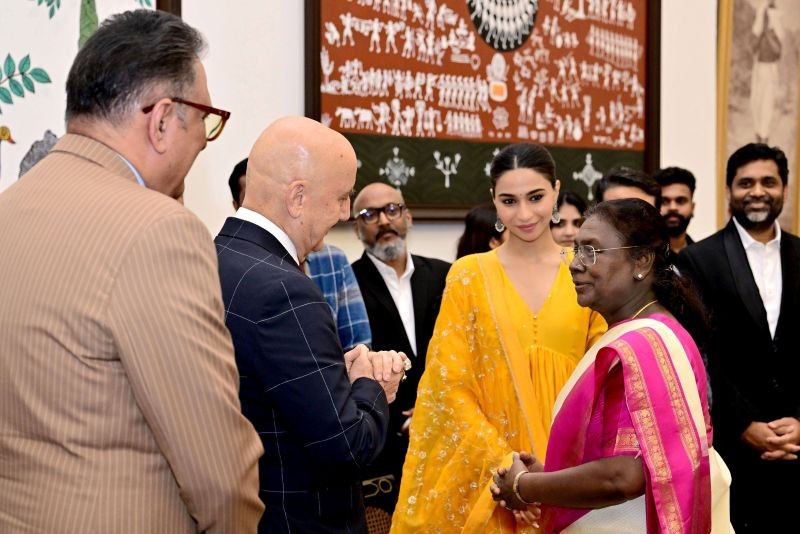Anupam Kher and others interact with President Droupadi Murmu during 'Tanvi The Great' screening at the Rashtrapati Bhavan.