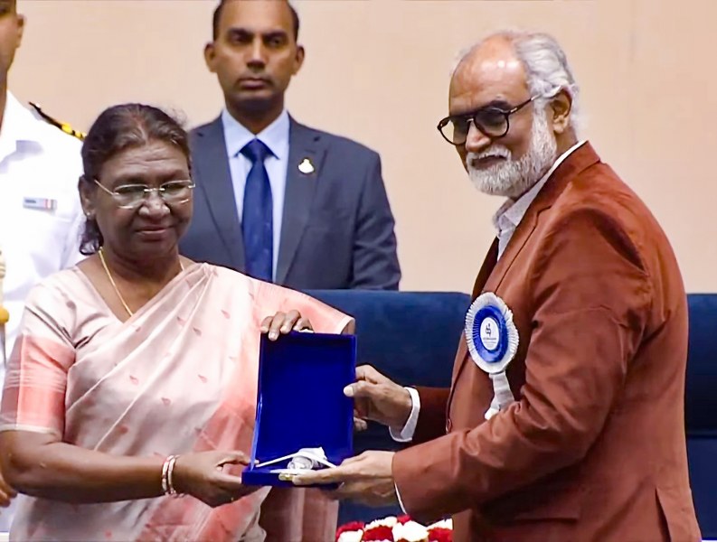 Dr. Sachchidanand Joshi, Member Secretary of IGNCA, along with Bappa Ray, received the award from President Droupadi Murmu at a ceremony at Vigyan Bhavan.