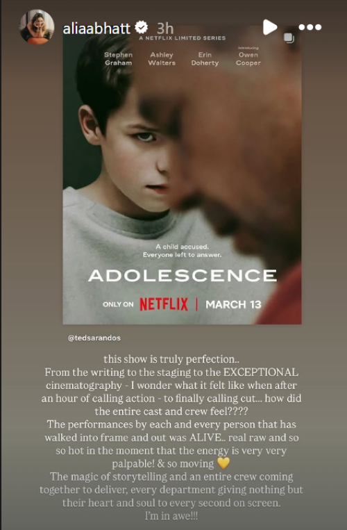 'I'm in awe': Alia Bhatt praises trending Netflix show Adolescence
