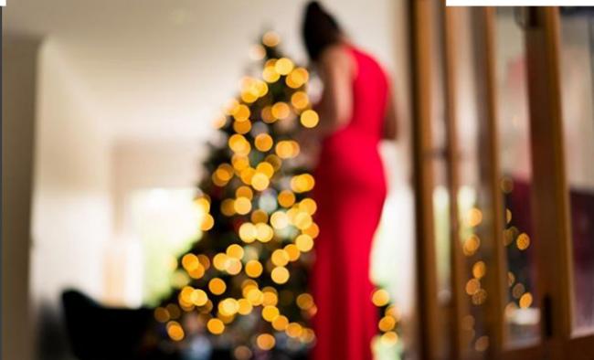 In the picture, the actress could be spotted standing alone near the Christmas tree.