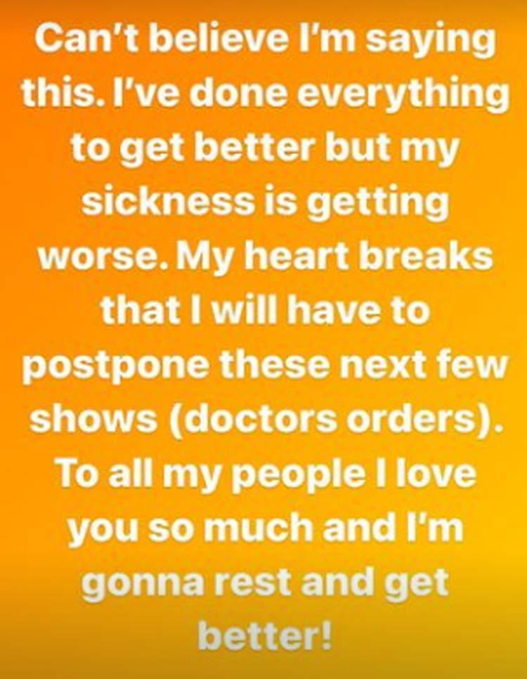 Bieber wrote on Instagram: "Can't believe I am saying this.I have done everything to get better but my sickness is getting worse .May heart breaks that I will have to postpone these next few shows (doctors orders). To all my people I love you so much and I am gonna rest and get better."