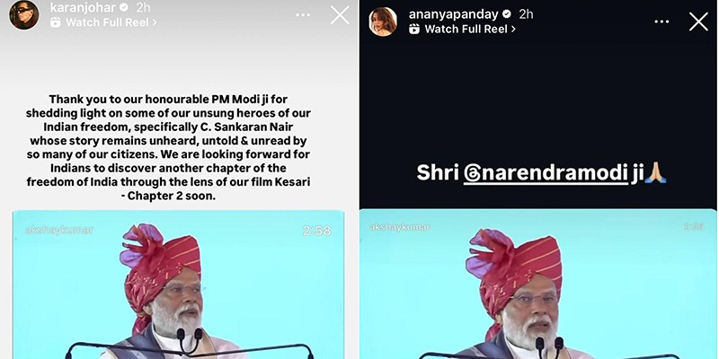 Karan Johar wrote on Instagram, "Thank you to our honourable PM Modi ji for shedding light on some of our unsung heroes of our Indian freedom, specifically C. Sankaran Nair whose story remains unheard, untold & uuread by so many of our citizens. We are looking forward for Indians to discover another chapter of the freedom of India through the lens of our film Kesari- Chapter 2 soon."