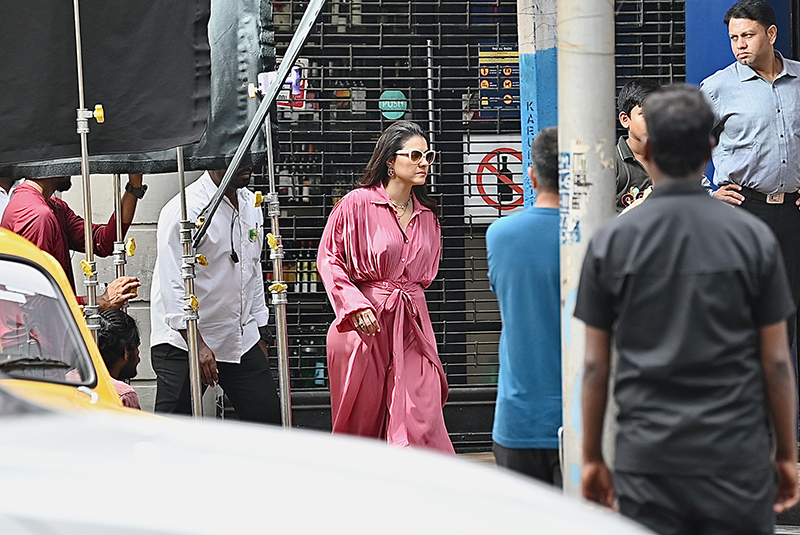 Kajol teamed up with actor Indraneil Sengupta for their shooting in Park Street, a hub of eateries with a disappearing touch of the Britishers.
