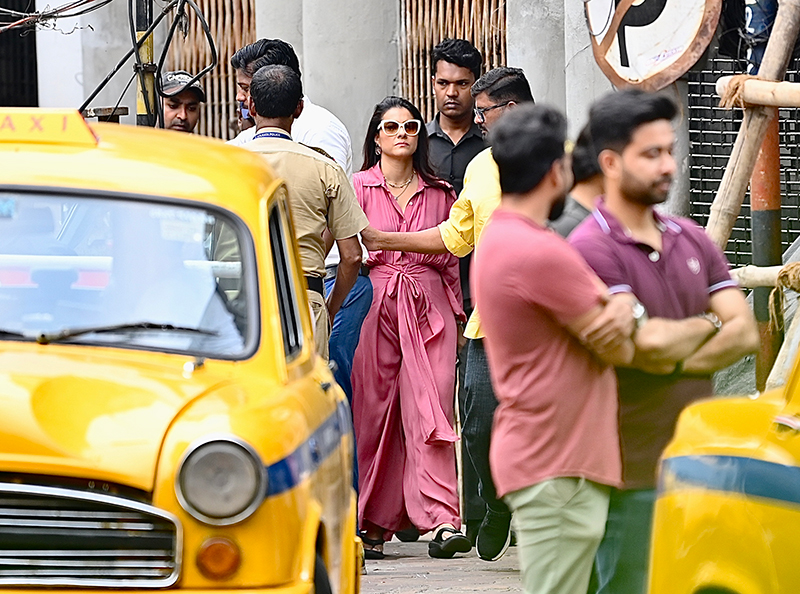 Kajol, who was seen in a pink jumpsuit, reached iconic tearoom and confectionery Flurys, then came out and got inside the vanity van. She again came out of the van, and walked towards Flurys as her shot began.