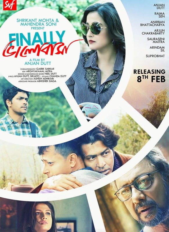 Film critic Taran Adarsh tweeted: "Anjan Dutt, Raima Sen, Anirban Bhattacharya, Arjun Chakrabarty, Sauraseni Maitra, Arindam Sil and Suprobhat... First look poster of #Bengali film #FinallyBhalobasha... Directed by Anjan Dutt... 8 Feb 2019 release... Trailer drops on 17 Jan 2019. #SVF."