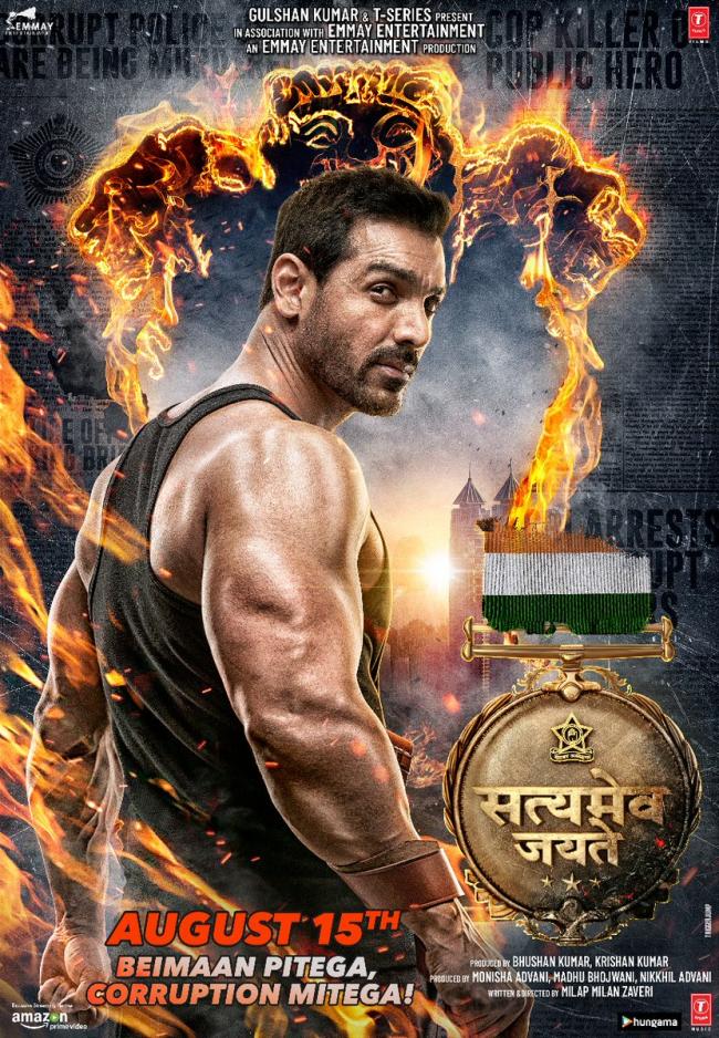 " John Abraham. Manoj Bajpayee... Presenting the first look poster of #SatyamevaJayate... Directed by Milap Milan Zaveri... 15 Aug 2018 release... #IndependenceDay... #SatyamevaJayateOn15Aug ," film critic Taran Adarsh tweeted.