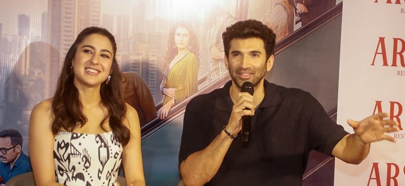 (From L to R) Sara Ali Khan and Aditya Roy Kapur at the press conference. Photo: Arpita Das