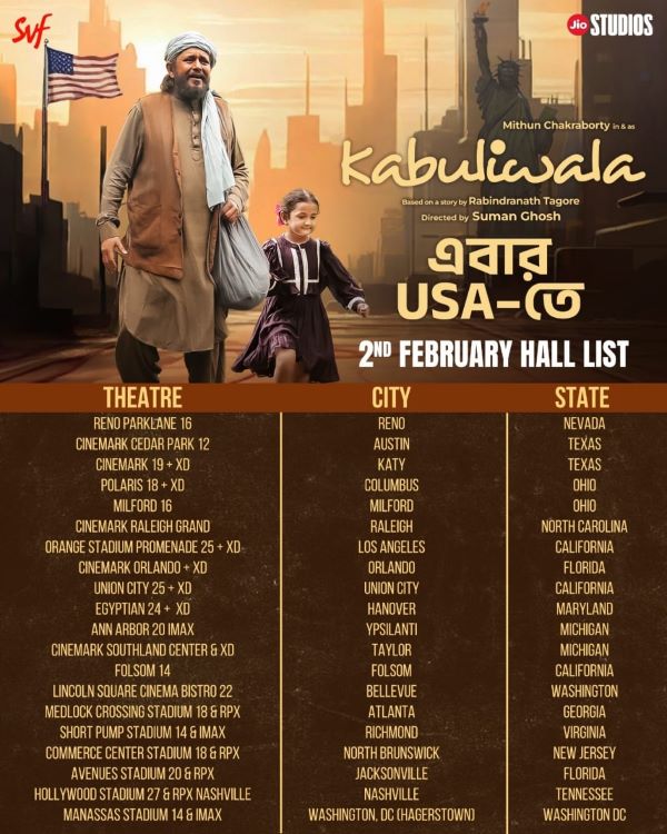 List of halls where Kabuliwala is running in the US | Photo courtesy: SVF PR Team