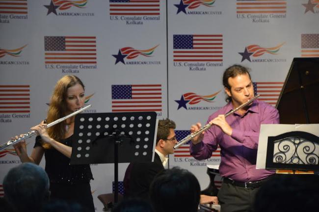American soprano Meeryung Hall (wife of US Consul General Craig L Hall) collaborated with European pianist Panos Karan and flutists Ana Chifu and Zach Tarpagos to introduce Kolkata’s western music lovers to the tradition of setting American poetry to music.