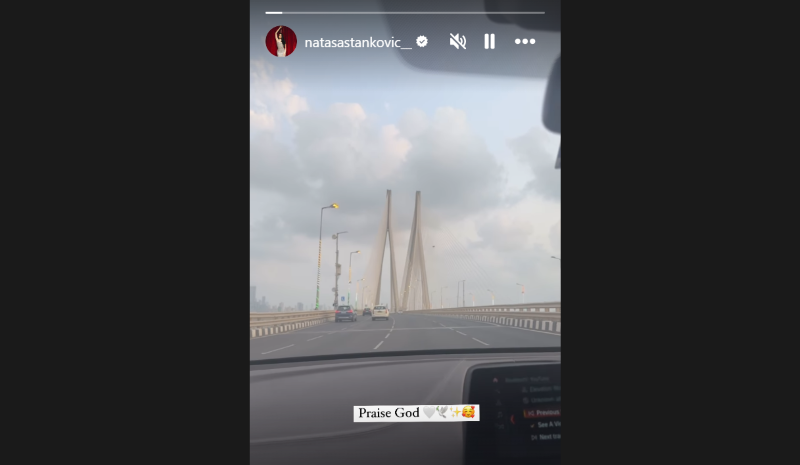 Natasa took to her Instagram story where she posted a video of a drive with a caption reading, "Praise God."