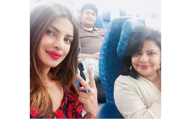 Informing her fans about her vacation plans, Priyanka shared an image with her family from aeroplane.
