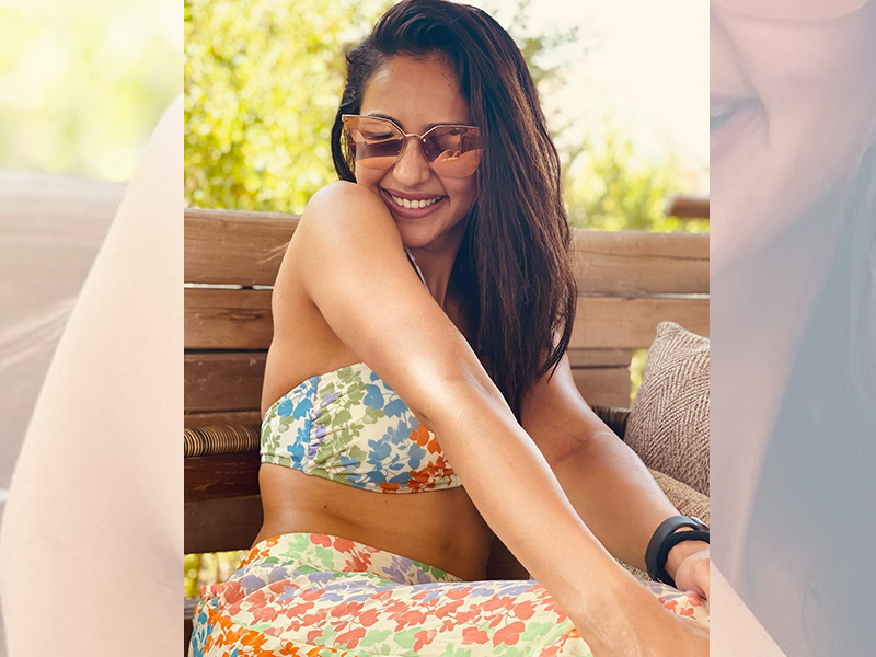 Rakul in her latest Instagram post is seen in a floral co-ord dress.