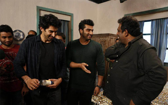 The actors close friends, Aditya Roy Kapur and Arjun Kapoor surprised the actor by visiting him on the sets.