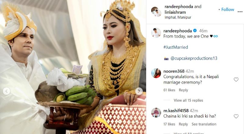 Randeep earlier announced in an Instagram post that he would get married to Lin Laishram in an intimate ceremony in Imphal on November 29 followed by a reception in Mumbai.