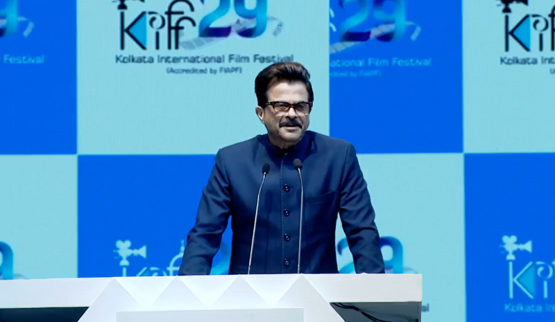 In an elaborate speech, Anil Kapoor talked about the legends from Kolkata like Satyajit Ray, Uttam Kumar saying, "Speaking of inspiration, my son Harsh (Harshvardhan) and I often find ourselves delving into the timeless works of Satyajit Ray for a masterclass in storytelling.