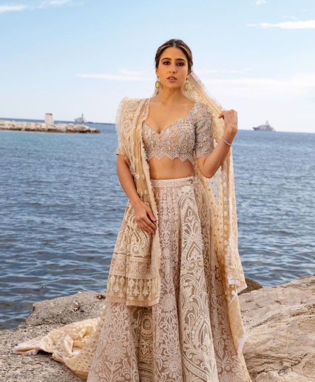 For her big Cannes debut, Sara Ali Khan wore an Abu Jani-Sandeep Khosla lehenga. She posted pictures of her OOTD on her Instagram profile and she wrote, "You Cannes do it."