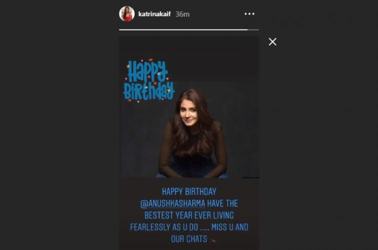Kaif, who shared screen space with Sharma in Jab Tak Hai Jaan and Zero, wrote in an Instagram story, "Happy Birthday Anushka Sharma have the bestest year ever living fearlessness as u do.... Miss u and our chats."