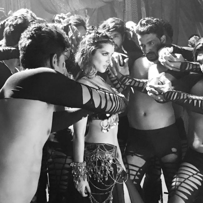 Sunny shared several images from the sets of the move on her Twitter page.