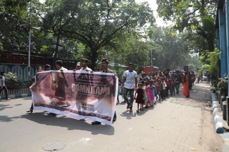 Team Gumnaami participates in a rally to launch new song of film