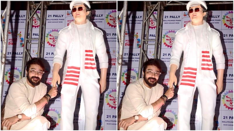 To surprise the Tollywood star with a gift, there was a figure of him posing in the classic Chirodini Tumi Je Amar style which was made by Sujoy Pal.