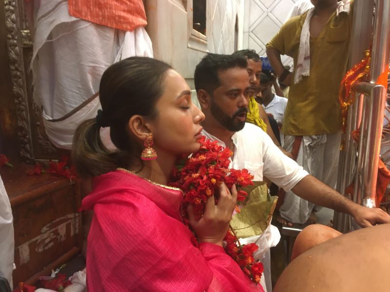 Mimi Chakraborty offering prayers at Kalighat Temple in Kolkata seeking blessings for the success of Toofan | Image by Avishek Mitra/IBNS