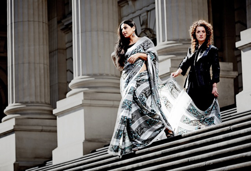 The hand woven textile was exhibited at the prestigious Melbourne Now arts exhibition at the iconic National Gallery of Victoria.And then draped on Vidya as a sari.