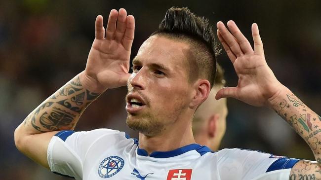 An initial flurry of activity having been swatted away stern-faced by a solid-looking Russian defence, Slovakia were starting to creak ominously when Hamšík delivered a wondrous pass from midfield to Weiss; he took three quick touches, wrong-footing two Russian defenders, and swung a shot across Igor Akinfeev and inside the goalkeeper's left-hand post.