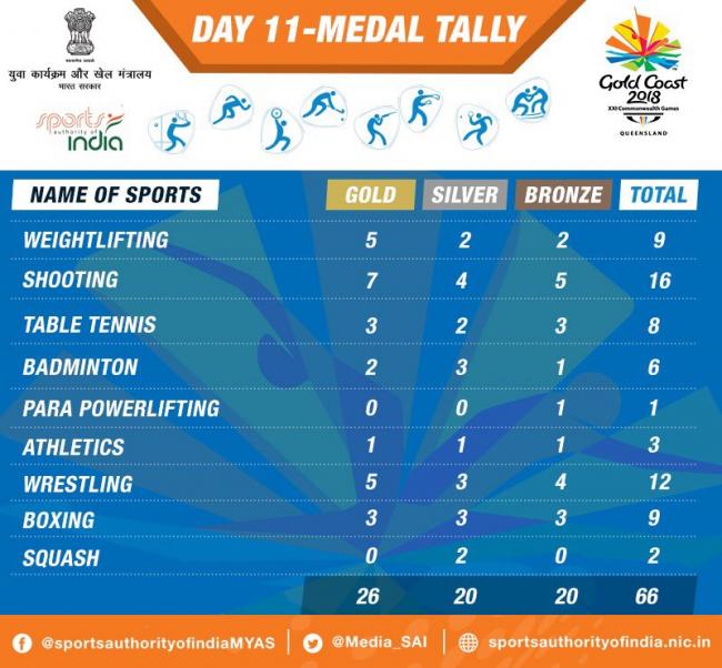 Gold Coast, Apr 15 (IBNS): With a total of 66 medals, India finished their Commonwealth Games campaign in the third spot on Sunday.