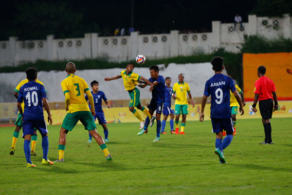 After the opening minutes of the match featured end-to-end football with neither Team being able to take advantage, even while testing each other’s custodian, South Africa caught the Indian defence napping in the 23rd minute. And the ‘Amajimbos’ took the lead when Ndamolelo Radzilani headed the ball home after a swift counter-attack, much against the run of play, from the left flank.