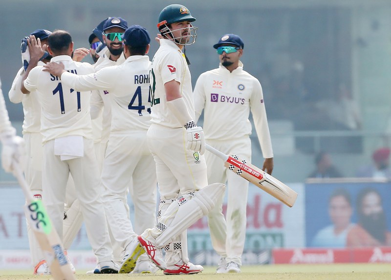 NEW DELHI, FEB 17 (UNI):- Indian players celebrate the wicket of Australian batsman during the first day of the 2nd test cricket match between India and Australia, at the Arun Jaitley Stadium, in New Delhi on Friday.