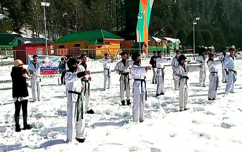Srinagar: A unique and first of its kind Taekwondo demonstration in Snow was organized at Pahalgam on Monday.