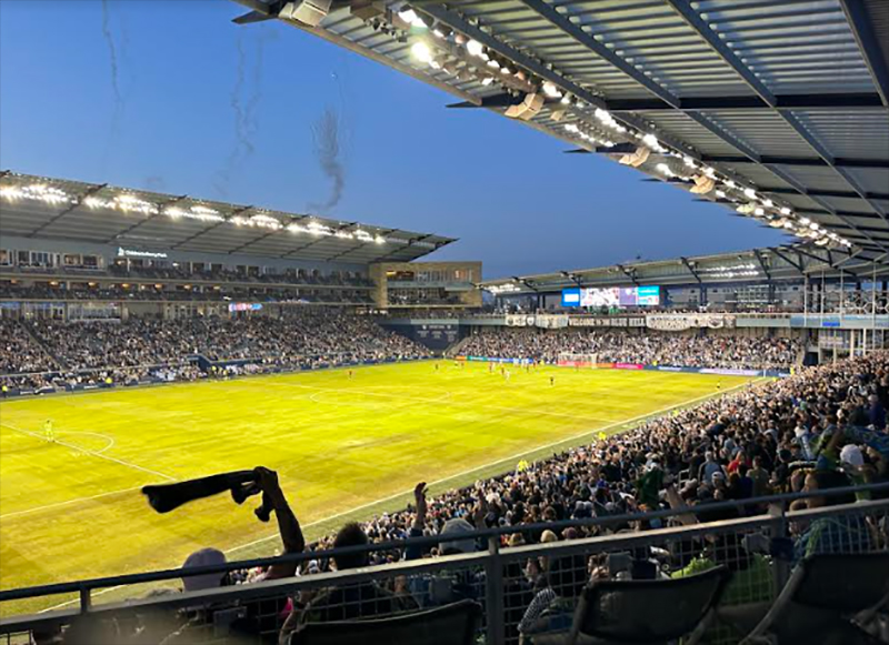 During a Soccer match with Sporting KC versus The Seattle Sounders on March 25, 2023, fans rooted for both teams in every corner of Children’s Mercy Park in Kansas City, KS. PC: Leah Rainwater, 3/25/23