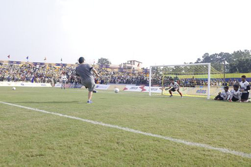 Diego Maradona’s first and last ever played match in India took place at Aditya School of Sports Stadium at Barasat on Dec 12, 2017, in a friendly match, "Diego vs Dada" against Indian cricket board president and former national team captain, Sourav Ganguly, in the presence of 30,000 people.