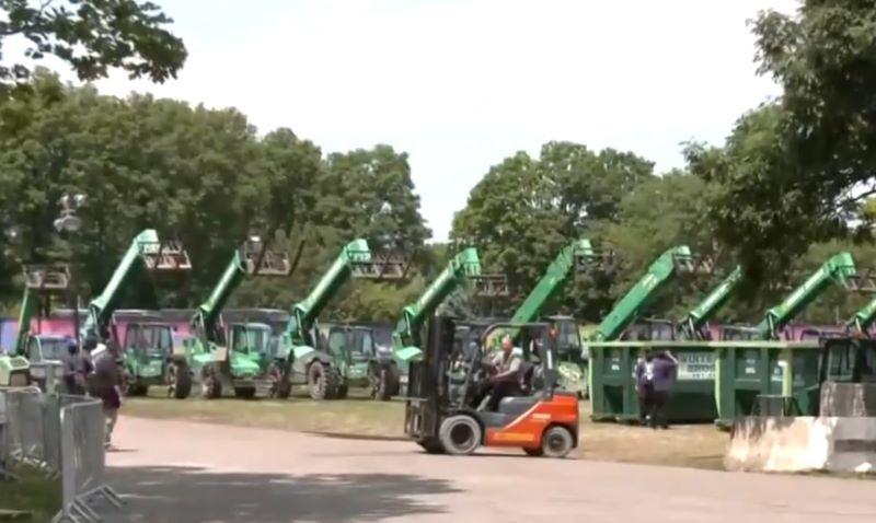 #WATCH | Nassau County, New York (USA): Bulldozers placed at the Nassau Cricket Stadium as the temporary stadium is set to be dismantled from tomorrow.