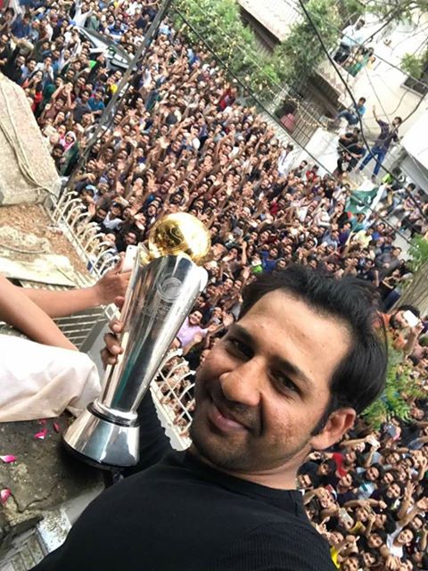 Captain Sarfraz Ahmed reached Karachi city where fans lined up to welcome their cricket hero.