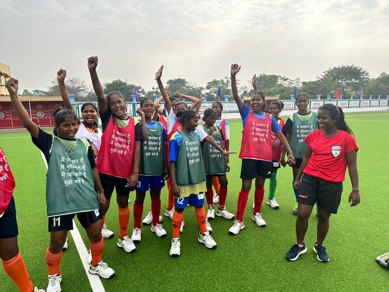 As many as 105 tribal girls, who are aged between 14-16 years, living in areas in Jharkhand vulnerable to human trafficking and child marriage, such as Gumla, Simdega, Khunti and Chaibasa, participated in the Hockey Training Camp that aimed to harness leadership skills among adolescent girls through on-field sports sessions, educate them on social issues, strengthen the anti-trafficking prevention nets with the collaboration of police and district administration.