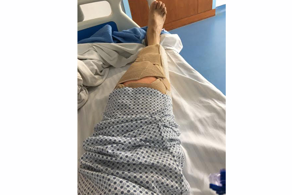 Posting a picture of her bandaged right leg, she tweeted with a cheerful smiley: "After the surgery ."