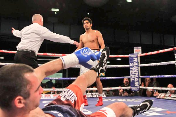 The Indian Olympic medal winner was fighting his first eight-round contest.